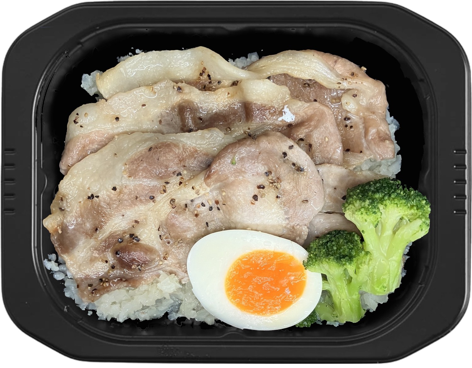 豚ロースをベースにした定番メニューで、香ばしく焼き上げた豚ロースの香りが食欲をそそります。味付けはシンプルで飽きにくく、日常に取り入れやすい一品です。 卵とブロッコリーもセットになっており、栄養バランスも考えられています。